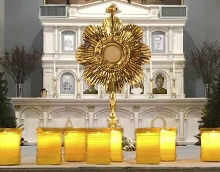 Stay after Friday’s 9:00 AM Mass for the Exposition of the Blessed Sacrament. This is a time when the Eucharist is revealed and displayed on the altar. It is a chance for us to spend some time in silence with our Eucharistic Lord.